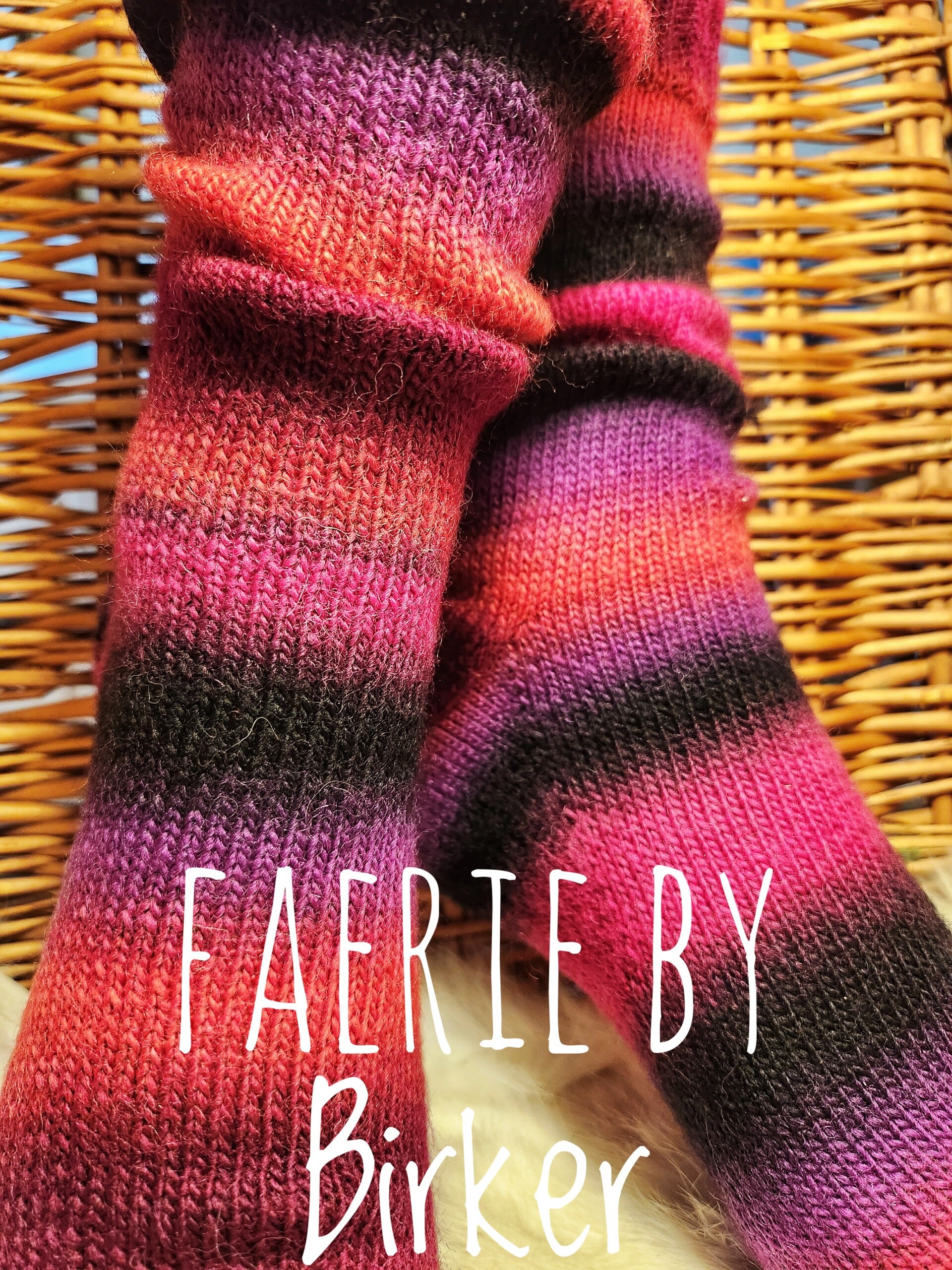 Handgebreid van een zg. superwash sokkenwol, deze kan op 30 graden in de wasmachine, NIET IN DE DROGER!