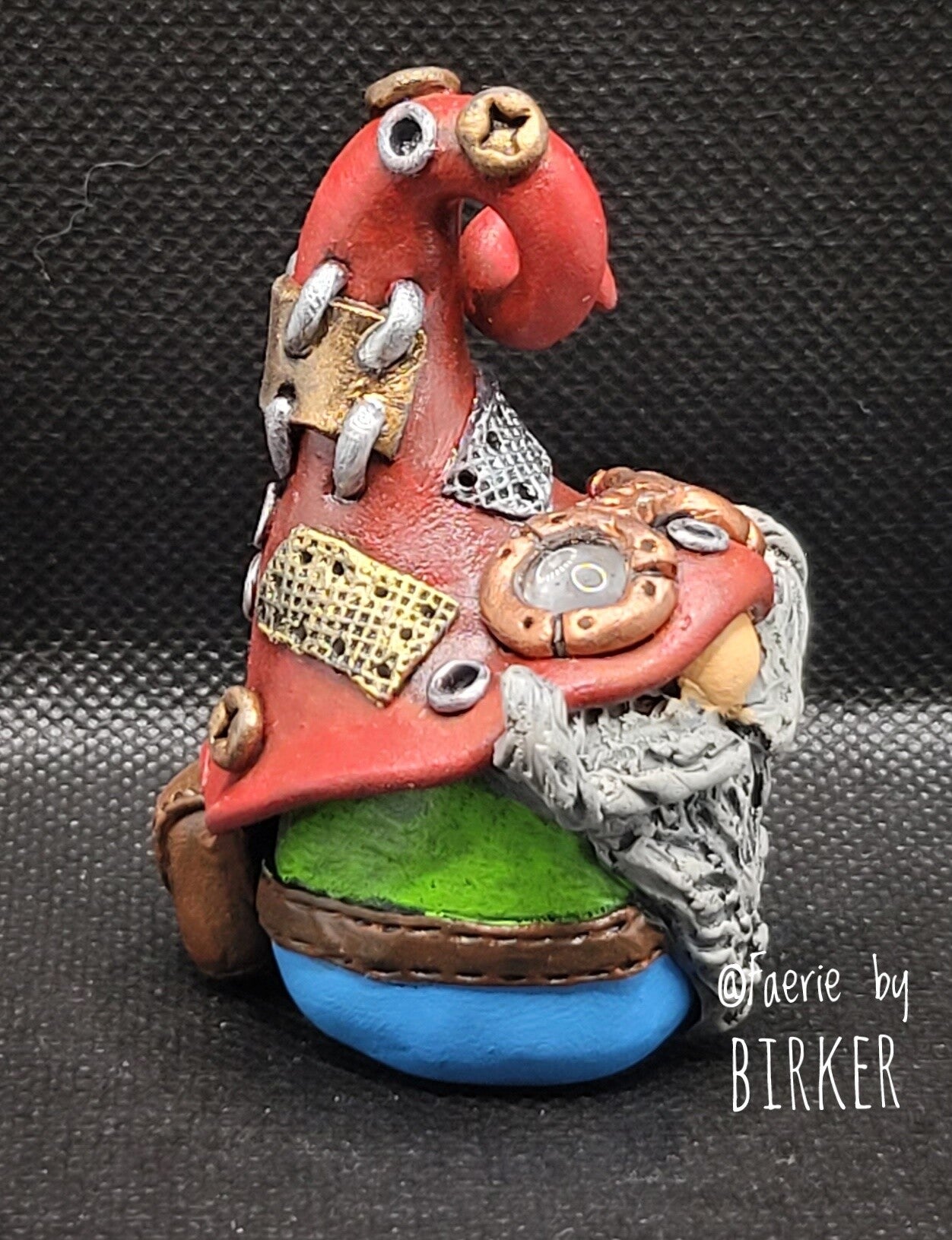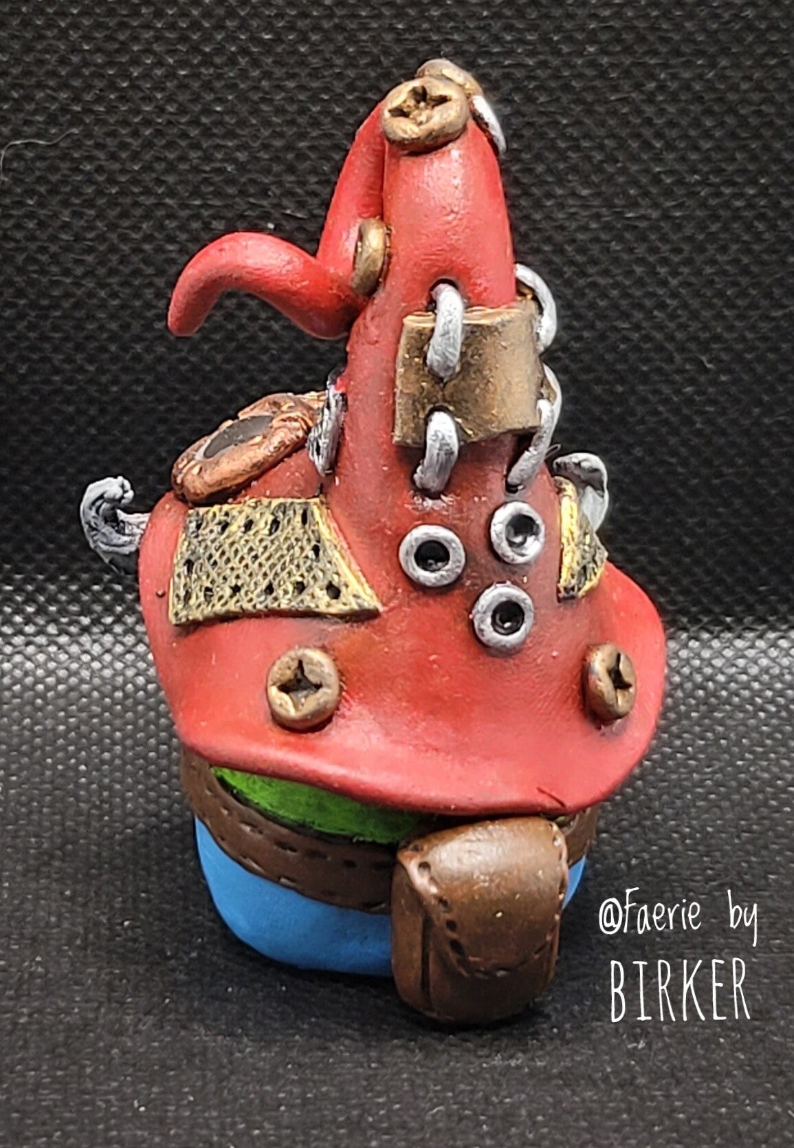 Schattige Gnomie in steampunk-stijl, genaamd McSteamy. Handgemaakt van polymeer klei en met de hand beschilderd met artist-quality acrylverf en afgewerkt met hoogwaardige UV-bestendige resin.