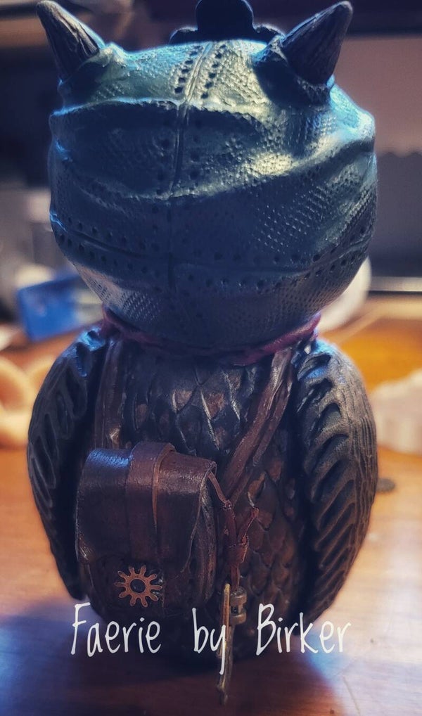 Stoer klein Steampunk uiltje, gemaakt van polymeer klei en handgeschilderd met artist quality acrylverf.